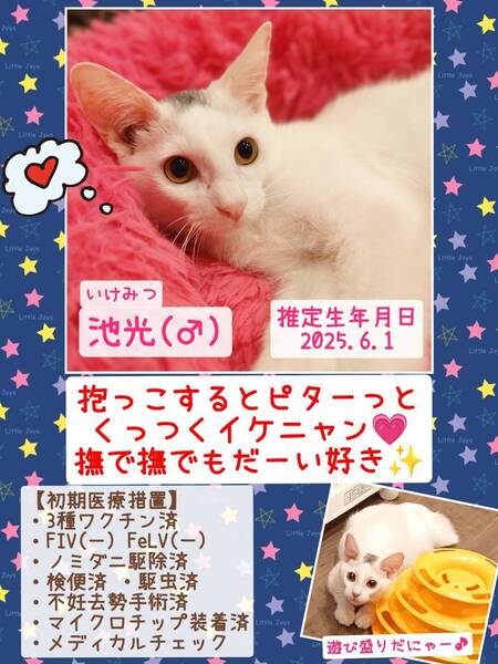 | イベント内容 | 【秘密結社ねこのひげ♡保護猫譲渡会】 2/22(日) 12:00~15:00 さいたま市北区東大成町1-230 金子建材内 ガーデンテラスにて 年内ラストの! 保護猫譲渡会を開催します☆ ちょうど良い月齢の仔猫たちや もっふもふなオトナ猫が ワクテカで参加します♡ 未来のご家族さまと 愛し愛されな 両想いになれますように♡ 家族にするなら保護猫だべ♪♪ こんなご時世だけど 新しい家族と笑顔で暮らしたい♪ という方は是非会いにいらしてください♡ ジャラシやニャンモックなどの 手作りチャリティー物販もあります♪ ご不明な点がございましたら インスタグラム @秘密結社ねこのひげ の DMまでお問い合わせ下さい☆ |