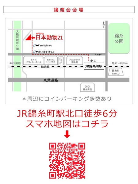 | 開催場所 | 墨田区錦糸1-11-10 4F(専門学校 日本動物21) | ||