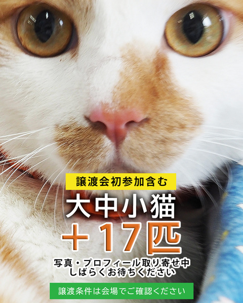 | イベント内容 | おとなねこ中心に18匹参加します! 飼うならおとなねこ!お家の子候補を探しに来てください。 ♂♀激かわ猫、癒し猫で賑やかです♪♪ ※一部の猫は情報取り寄せ中です。しばらくお待ちください。 【おとなねこ18匹大集合★みよし市】 ■5月3日(日)10時~15時 ■みよし市カリヨンハウス(みよし市三好丘2-2-1) ※無料P48台、近隣に大型コインPあり <参加団体> NPO法人三好ネコの会 https://www.instagram.com/miyoshineko 猫暖心 https://www.instagram.com/nekodangonet <ご来場前に> ・猫は先着や申入れの順番ではございません。 ・適正と条件を十分考慮させて頂き、トライアル先は抽選で決まります。 ・当選されたご家庭のみに当日電話連絡を差し上げます。 ・体調不良等で不参加になる猫もございます。 <三好ネコの譲渡手数料> ●成猫/オス30,000円・メス35,000円 ※成猫は不妊去勢済、ワクチン済です。 ※個人参加猫、他団体猫は上記手数料ではございません。 ■主催:NPO法人三好ネコの会 インスタ、Facebook、HPなどのSNSはこちら https://miyoshi-neko.jp/sns <もったいないを保護猫に> ご家庭で余っているフードを譲渡会場でお受け取りできます 買ったけど食べてくれない、飼い猫が亡くなって残ってしまったなど キャットフードドライブにご寄贈をお願いします。 |