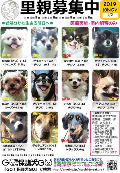 | イベント内容 | こんにちは。静岡県御殿場市の会社員、ボランティアをしていますGO!保護犬GOです。 保健所や殺処分場から保護した犬たちが、医療実施、家庭犬しつけをされ新しい飼い主さんと巡り会うための会です。 かわいくて欲しくて買ったはずの犬達がどうして殺処分されるのでしょう。飼い主がいない犬は生きていけません。 GO!保護犬GOは団体ではなく個人でボランティアをしている会社員です。 たくさんの里親さん方が支えてくれてイベントが成り立っています。 感謝しかありません。 高額医療費をかけた犬達が、不幸な過去があり、ここに存在している奇跡だということを、リアルの世界でご覧ください。 会場でおまちしています。 GO!保護犬GOでは、イベント会場での里親申込は一切いたしておりません。 トライアルもありません。 里親さんはGO!保護犬GOが判断さえていただきピッタリの子をご提案させていただきます。 『こんなはずではなかったのに』失敗のない保護犬選びならGO!保護犬GOです。 ペットショップ代わりに若くて人気の犬をゲットしようという方はご遠慮ください。 シニア、病気、問題犬としてリハビリ中の犬も参加します。 心ない言動の方は即退場していただきます。あらかじめご了承ください。 詳しくは下記ホームページ(ブログ)ご覧くださいませ。 保護した犬は体を張って守り抜く個人ボランティアです https://ameblo.jp/ntachi-to-sakura/ GO!保護犬GO~見る・知る・伝える→殺処分ゼロへ~ |