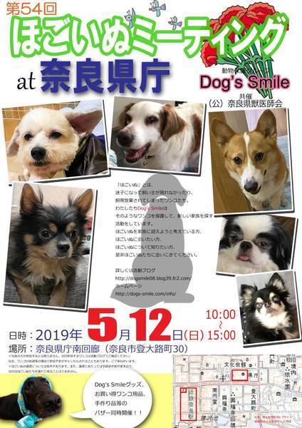 イベント内容 5月12(日)、奈良県庁の南側回廊部分をお借りして第54回ほごいぬミーティング at 奈良県庁」を開催します。