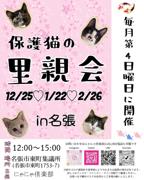 イベント内容 沢山の保護猫がずっとのお家を探しております!