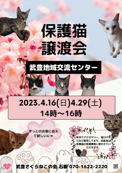 私達が活動中に保護した猫たちの譲渡会を行います。猫を迎えたいと思っている方、かわいい猫達に会いに来てください。