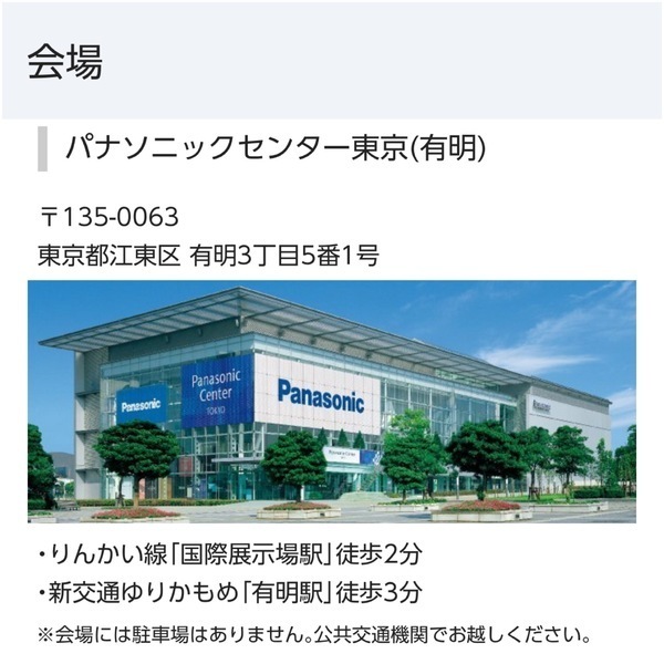 | 開催場所 | 江東区有明3丁目5番1号, パナソニックセンター東京 | ||