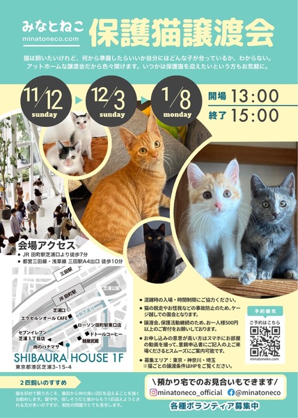 イベント内容 イベント内容 みなとねこが毎月定期開催している譲渡会です