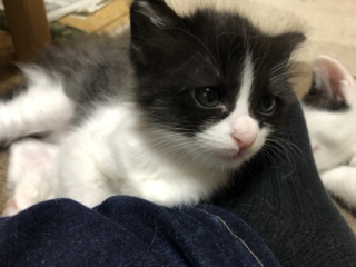 毛が長いめの黒白の可愛い子猫です。