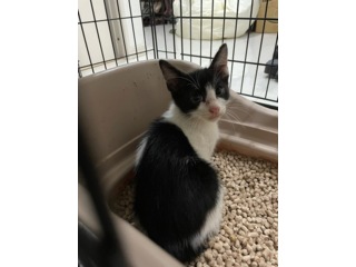 つぶらな瞳の白黒の猫ちゃん 二匹兄弟の一匹