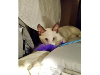 まるで白いたぬきのよう。シャム猫ちっくな女の…