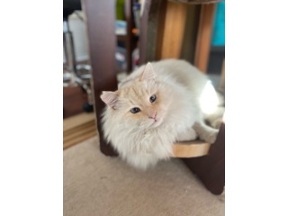 人間大好き甘えん坊・青い目のモフモフ白猫ジョ…
