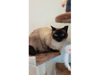 青い目のシャム色の猫。怖がりです。