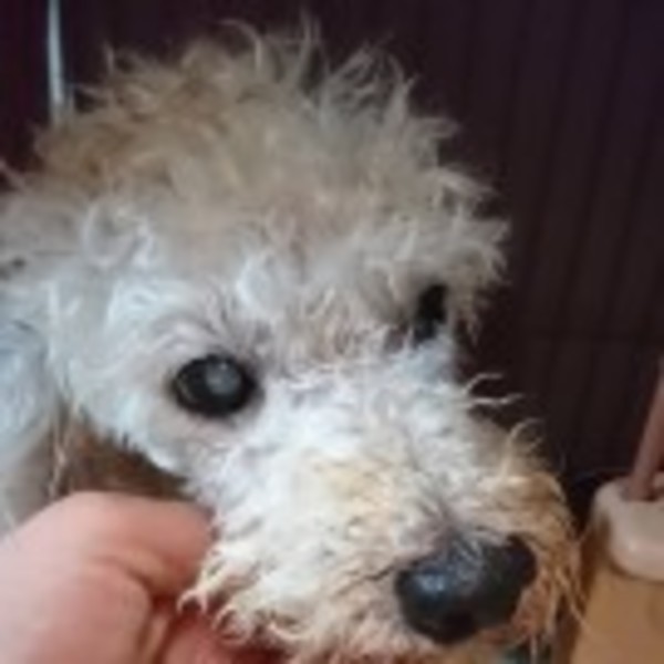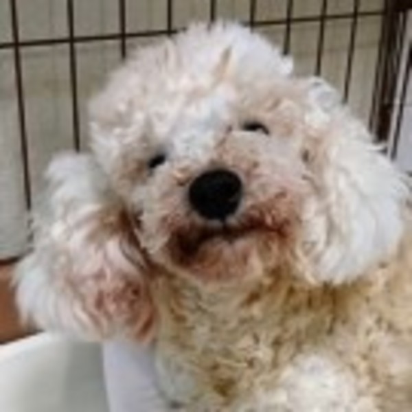| 特徴(性格など) | トイプードル(ホワイト)のかごめ 体重:4.65kg おっとりマイペースです 左目が若年性白内障の可能性あり |