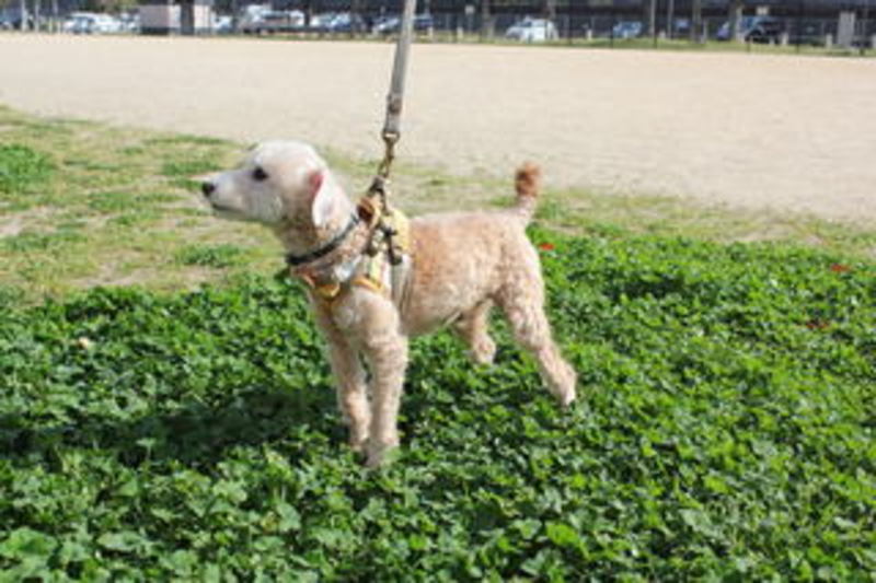 | 特徴(性格など) | トイプードルで、頭の方が白く、尻尾に向かって段々と茶色が濃くなっています。 | ||