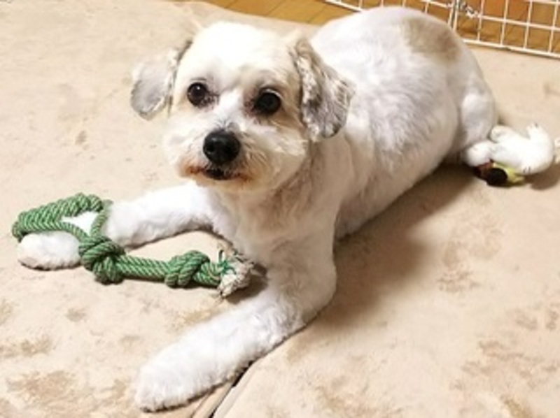 | 特徴(性格など) | 小型テリア系Mix犬の男のコ。推定8歳、体重は9.9kgです。毛色はホワイト×ブラウン。仮の名前を「アルフ」くんと名付けました。 とても甘えん坊で人懐っこいコです。色々な所で暮らしてきたからか、人の顔色をよくみます。 ビビりさんで、他の動物を怖がって、怖すぎて先に攻撃に出ようとしますので、先住の動物がいる場合や、お散歩、カフェなどでは特に注意が必要です。 パニックになると力が強いので、子供や高齢者など、制御力の弱い人によるお散歩は、いざというときには危ないと思います。 トイレは、大小ともシートで上手にはできますが、ウンチは外でする方が好きみたいです。オシッコは、足を上げてする派です。 Mix犬ですが、定期的にトリミングが必要なワンコです。 オスワリ、オテ、オカワリ、フセ、マテができます。トイレもすぐに覚えました。人の食べ物を欲しがりますが、「ダメ」で すぐに退きます。賢いです。 留守番時はケージに入れてますが、ケージはあまり好きではありません。留守番の少ないご家庭の方が良さそうです。チャイム等に反応して吠えます。 今、夜は人間の布団の足下で寝ています。オモチャで遊ぶこともできるようになりました。とても、表情豊かで かわいいコです。 フィラリアは陰性です。他に健康上の問題はありません。 現在は、一時預かりボランティアさまのもとで新しい家族を待っています。 健在の様子はコチラ → https://blog.goo.ne.jp/goinnkyojiji |