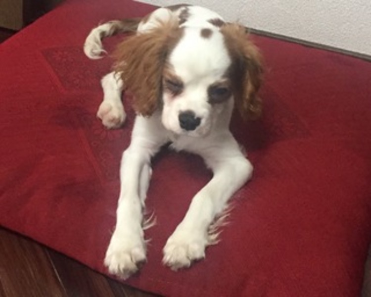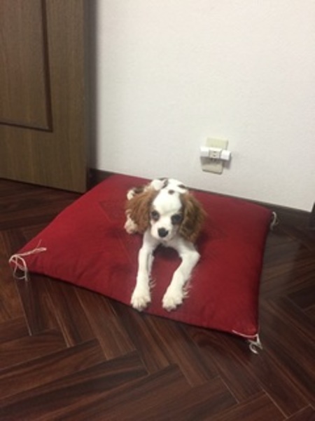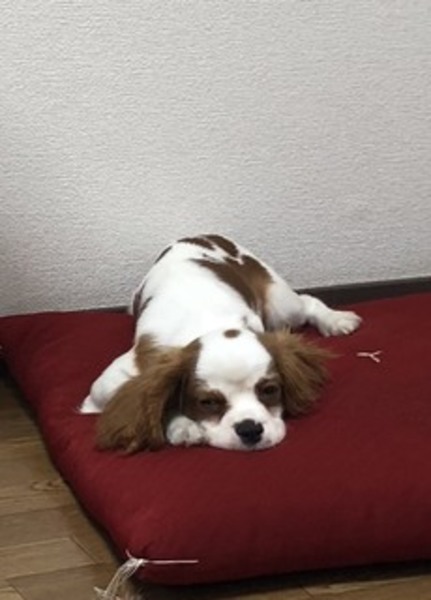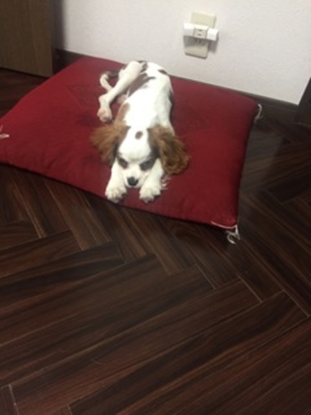 | 特徴(性格など) | キャバリアです。名前はハチといいます。色は白地に茶色の模様です。 賢いですがちょっと臆病です。人懐っこく活発です。寂しがり屋です。 |