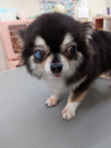 | 特徴(性格など) | 角膜腫瘍により眼球が白濁していますが、視力はあります。 人間大好き、甘えん坊さんです。 他のわんことも仲良くできます。 不妊手術済です。 |