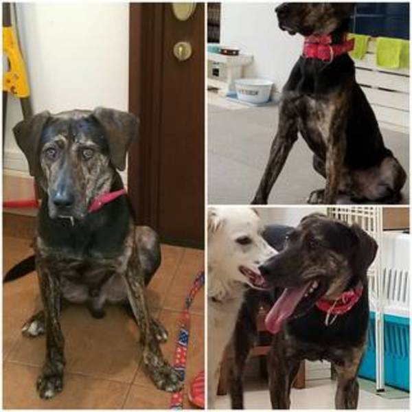 | 特徴(性格など) | プロットハウンド 25キロくらい ★母犬(5歳くらい)と思われる子と保護しています 男の子 毛並みの綺麗なゴージャスな男の子 性格は温厚、かなりの臆病で、犬猫どの子とも仲良くできます。 とにかくびびりなので、脱走には注意です。 車の移動もOK トイレは基本、外派 外飼育は× 去勢、ワクチン、狂犬病注射、マイクロチップ済み 検便➖ フィラリア➖ |