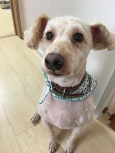 | 特徴(性格など) | 甘えんぼうの、シュナウザーとプードルの ミックス犬です。 名前はクッキーです。 |