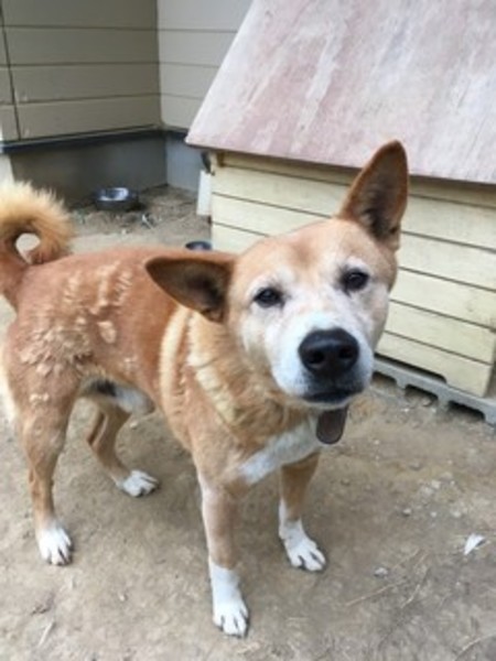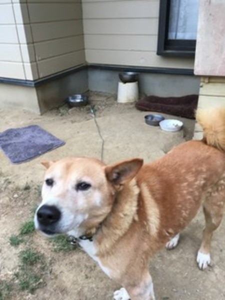 | 特徴(性格など) | のんちゃん、雑種中型犬、未去勢 子犬の時にしつけを受けていなかった為、お座りや待てなど出来ません。散歩も長年させていなかった為、散歩の仕方が分からず引っ張ってしまいますが、根気よく教えればきっと覚えると思います。今現在はお散歩の訓練中です。 性格はとてもいい子で人が大好きな子です。噛み癖や人に吠えたりなどはありません。 健康状態は良好です。9歳とは思えないくらい元気いっぱいでドッグフードをもりもり食べます。 |