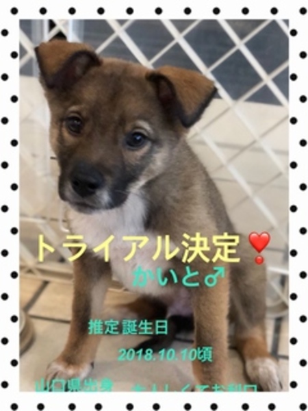 | 里親募集する理由 | 山口県で、野犬が産んだ四兄弟。 住民の方が巣穴よりレスキュー保護しました。 母犬から引き離すのは心苦しかったのですが、過酷な土地、カラスなどに襲われ命の危険が大きいので保護となりました。 |