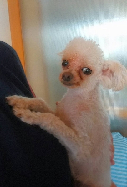 | 特徴(性格など) | プードルとチワワのミックス 名前は、タントくん 体重 1.7㎏ ワクチン 接種済み レボリューション 済み フィラリア 陰性 パテラ 両足グレード1〜2 心雑音 問題なし 去勢手術 済み 1才で保護した時から口内炎、口臭が酷くて痛がり病院で、何回かに分けて抜歯をしてもらいました。 元々皮膚が弱くて、歯が当たると炎症を起こしていたようです。 体は見てもらいましたが、湿疹も無いのですが、足でかく仕草をするので、痒み止め、サプリメントを飲ませています。 掻かないときもあるので癖なのかもしれません。 トイレは、庭に出したりするとしますが、室内ではマナーベルトをしています。 保護して3年経ちますが、性格が甘えん坊でいい子で、まだまだ若いので当方に居るより一般家庭で可愛がって頂ければ、タントくんも嬉しいと思います。 |