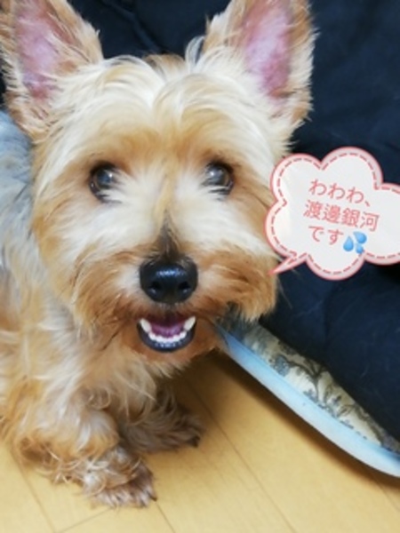 | 特徴(性格など) | ヨークシャーテリアです。 5キロの大柄ですが、性格は小心者でとてもおっとりマイペースです。 名前は毛色から、銀河と名付けました。 去勢済です。 |