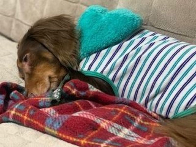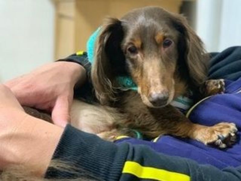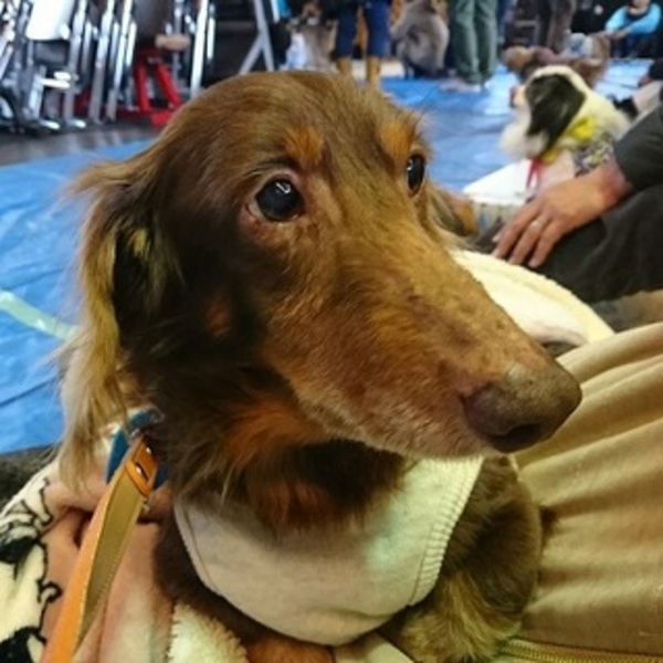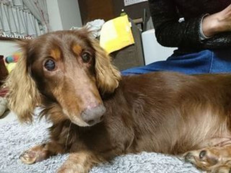 | 特徴(性格など) | ミニチュアダックスフントの男のコ。毛色はチョコタン、体重は8.5kg。年齢は推定5〜6歳です。仮の名前を了(りょう)くんと名付けました。 網膜変性症のため、両目が見えていません。また、耳もほとんど聞こえていないようです。ドアが閉まる音や手をたたく音などはわずかに聞こえるようです。 性格はとても穏やかな、甘えん坊さんです。人の気配がなくなると探すように鼻鳴きをしたり吠えたりすることがありますが、つこくはありません。しばらく戻ってこないと理解すれば大人しく待っていることができます。 お布団や毛布にもぐって眠ることが好きなので、お留守番時は用意しておいてあげると、たいていもぐって大人しくお留守番できます。 他犬とは特に問題ありませんが、遊びたくてワンワン吠えてしまうことがあります。同じ環境下で過ごす同居犬には今のところ吠えたりすることはありません。もちゃで遊べるので、引っ張りっこをしてあげると楽しそうに遊びます。 トイレは基本でしたいようですが、家の中でもトイレの場所を覚えれば、多少失敗はありますが、毎回同じ場所ですることができます。 散歩はリードの引きもなく上手に歩けます。 少し大き目なダックスさんですが、穏やかな優しい性格、そして赤ちゃんみたいに甘えん坊の、大人しくとっても可愛いコです。 フィラリアは陰性です。他に健康上の問題はありません。 現在は、一時預かりボランティアさまのもとで、新しい家族を待っています。 現在の様子はコチラ → http://26town.blog137.fc2.com/ |