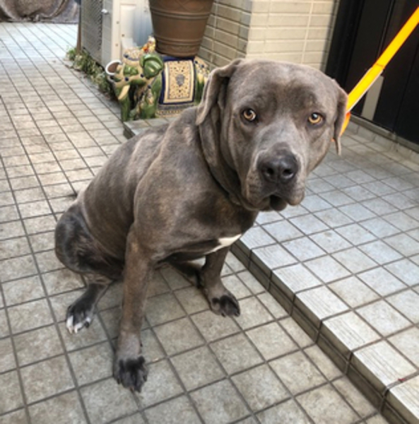 | 特徴(性格など) | スタッフォードシャー・ブル・テリアの女の子(体重38kg)です。 とある工場付近で、そこに勤務している人からご飯を貰っていた様です。 いかつい顔に大きな体という見た目からすると、本来は出合っただけで危険を感じてしまいそうですが、ご飯を貰っていた事からしても危険性ゼロだった事がわかります。 今回はセンターの職員からの要請で出向いたのですが、世間で危険犬種と言われているとは思えないほどの、切ない位のフレンドリーさでビックリしました。 巨体をくねらせ、力任せに擦り寄って来る様に心を掴まれてしまいました。 虐待は受けて無さそうでしたが、刺激の少ない所にいたのか、元々気が小さいのか、連れ帰った当初は未体験の物には少し怖がる様子を見せました。 しかしそれも徐々に解消され、お散歩の範囲も広がりました。 散歩の引きはないのですが、すれ違う女性にズイズイと近寄って行くのが可笑しいです。大抵の方はその強面の顔とのギャップに「可愛いですねー」と言ってくださり、本犬も気を良くしています。 只今は、落ちている物全てがまだまだ珍しいようで、ついつい反応してしまいます。 最近は季節柄、片方だけの手袋をよく見つけます。 「それはダメだよ〜」と言いつつこちらが回収すると、結構素直に手離してくれるのでした。 ネアカで非常に素直な性格の仔です。 保護当初の緊張と遠慮も取れつつあり、自己主張する事もあります。 ちょっとお調子者なのではしゃいだときは少しパワフルで難儀することもありますが、とっても愛嬌のある可愛い仔です。 ☆ 詳細は以下のページをご覧ください。里親申し込みもこちらからできます。 http://www.drct.gr.jp/protecteddog/18075EF190125.html |