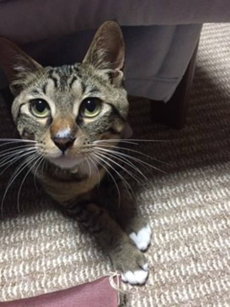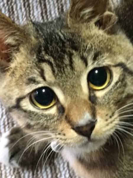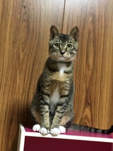 | 特徴(性格など) | 【靴下キジ】 元気な男の子 【エイズ陽性】 キジトラらしい慎重さと冒険心を兼ね備えています。 初対面の人には距離をとって様子を見ますが、慣れると大いに甘え、大いに遊びをせがむ、子猫らしい子猫です。 甘えるときはノドを良く鳴らし、顔にキスをしてくれます。 ふわふわの手触りの子猫らしい毛並みで、肩にも上手に乗ります。 |