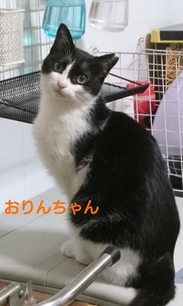 | 特徴(性格など) | 仮名「おりんちゃん」 ワクチン済み、レボリューション済み、ウイルス検査白血病、エイズ共に陰性 黒白の女の子。不妊手術済みです。C283535のピックくんと兄妹です。 静かな子です。 フリーの状態で人に寄っていく事はないのですが、自分がサークルに入っているなど、人が直接来る状況でない事をわかっていて、そんな時は寄ってきて「ニャニャニャ」と鳴いてアピールしたり、ちゅーるをねだったりしてきます。 撫でる事は出来ますが好きではない様です。 でも、ちゅーるは人の手からでも優しく舐めて食べます。 人にすり寄って甘えるタイプの子ではありませんが、年齢的にも落ち着いていますしおとなしい子なので一緒に暮らしても手間のかかる子ではありません。 小さなお子さんのいるご家庭はご遠慮下さい。 環境変化のストレスなど考慮して兄妹2匹での受け入れを希望しています。 |