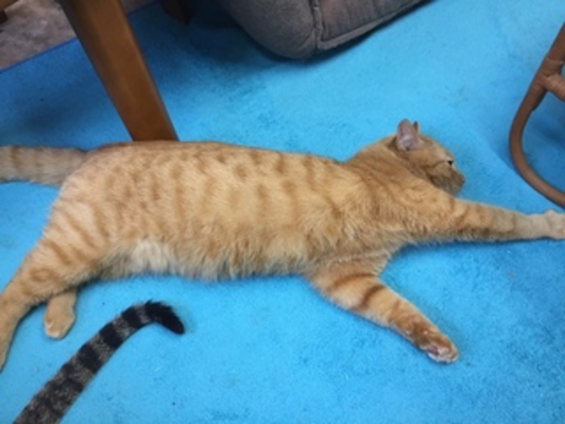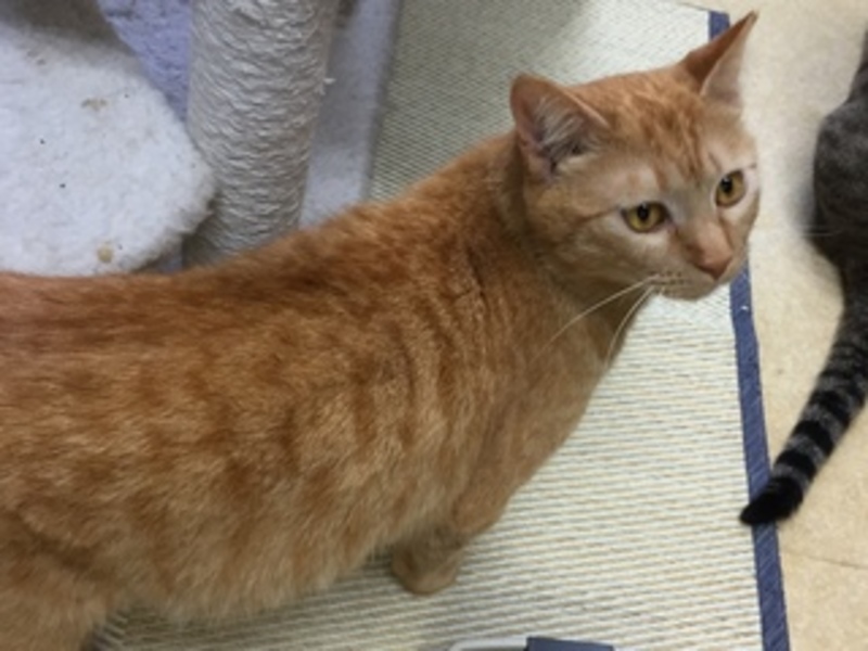 | 特徴(性格など) | 赤系のきれいな茶トラです。大柄です。大人しく、ビビリで隠れてばかりいたのですが、最近心を開き、お腹を出して甘えます。とても可愛いです。なめらかな体つきの、若々しい子です。 | ||