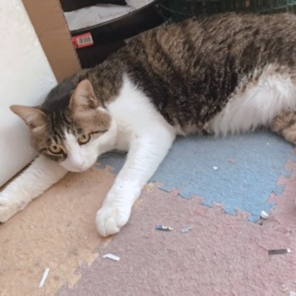 | 里親募集する理由 | 昨年10月ぐらいに庭に住み着き、迷子猫かと思い飼い主さんを探しましたが未だ現れず、里親募集に切り替えました。先住猫と合わないため隔離しています。 これから暑くなるので涼しいところに自由に行け安住できるようにしてあげられたらと思います |