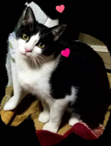 | 特徴(性格など) | ☆仮名:チビ(♂) ☆毛色:白黒(ハチワレ) 背中の白いスポットがチャームポイント ☆健康状態 ノミ・ダニ駆除済み 三種混合ワクチン:初年度2回接種済み 血液検査:エイズ・白血病共に陰性 去勢手術 済 ☆性格・その他 食欲・好奇心旺盛!!元気いっぱいの男の子 保護部屋のお兄ちゃん、お姉ちゃん猫にも臆せずアタックします。 先住猫さんがいらっしゃるお宅でも大丈夫です。 仔猫ですから暴れますがご理解の上、愛して大切にして下さる家族を探しています。 |