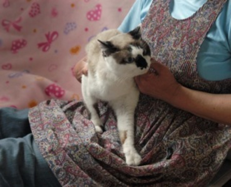 | 特徴(性格など) | ブルーの瞳がチャームポイントのかわいい猫です。だいぶ人間に慣れて、甘える仕草を見せることもあります。 臆病な性格なので、見慣れない事を怖がるビビリさんです。 | ||
