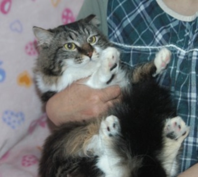 | 里親募集する理由 | TNRを頼まれた餌場で捕まった猫です。長毛なので外での生活は可哀想なので保護しました。 わりと臆病なところがあります。お腹が空いたとき、トイレを掃除して欲しいと鳴いて知らせます。 検便、駆虫済み。予防接種済み。猫エイズ、白血病ともに陰性。 |