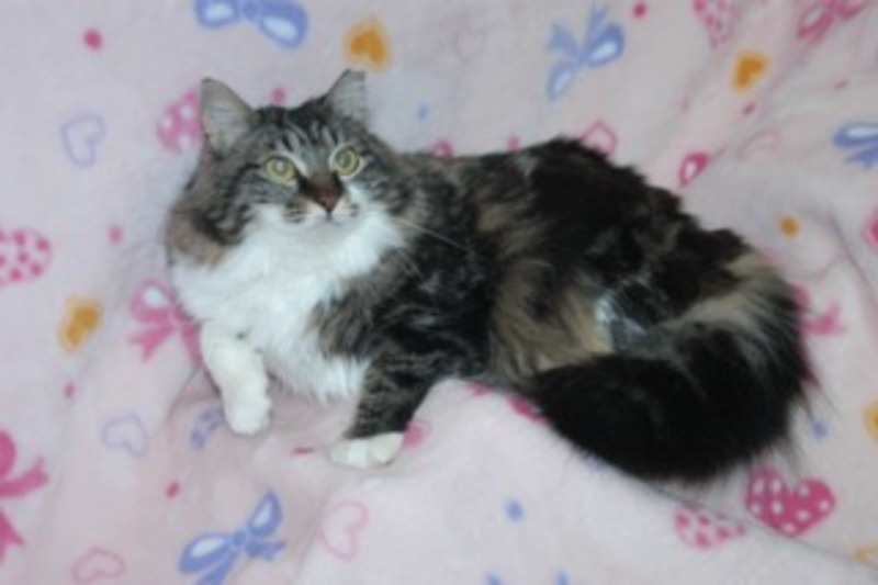 | 特徴(性格など) | キジ白で長毛の「チビ」ちゃんです。ふさふさシッポがチャームポイントです。 | ||
