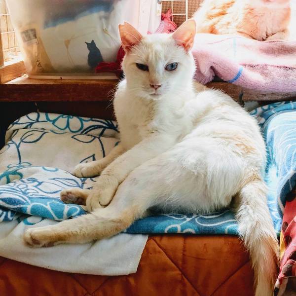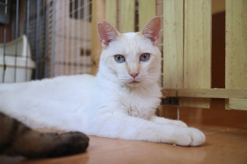| 特徴(性格など) | ◆ブロンくん ○ 7歳くらい(2021年時点)の男の子です。 ○全体的に白で少しクリームが入っています。 ○基本的にビビリな性格のため人馴れ訓練中ですが、少しずつ環境に馴れて心を許してくれるようになりました。 ○食事の時などは人の近くに寄って来てくれるようになり、触らせて撫でさせてくれるようになりました。 ○攻撃性はありません。 ○食いしん坊で美味しいものが大好きです。 ○ブロンくんのペースに気長に付き合ってくださる里親様を希望します。 ★ワクチン、去勢手術済み。 ★猫エイズ、猫白血病ともにマイナス。 ★★Zoomアプリを使用して、リモートお見合いを設定することも可能です。まずはお申込みください★★ |
