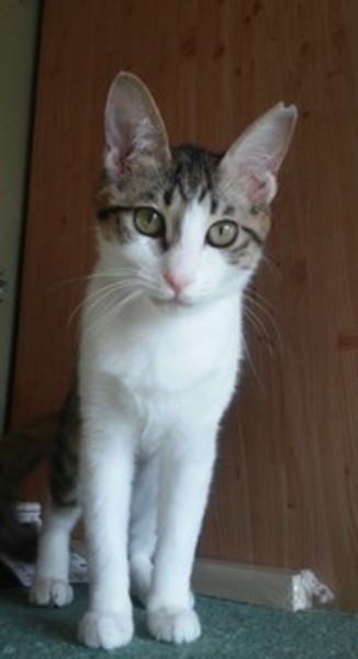 | 特徴(性格など) | 猫エイズ陰性ですが、白血病は陽性です。 大きな目のキジ白の女の子です。スリスリしてゴロゴロたと喉を鳴らしてくれます。 人なれしていますので早く慣れてくれると思います。 しっぽは先だけが横に曲がっています。 |