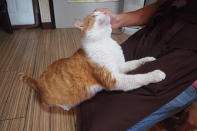 | 特徴(性格など) | 【ドスコイキャット】 埼玉県狭山市【保護猫カフェfunnyCat】在住。 https://cafe-funnycat.amebaownd.com/ 人なつっこくオモチャで遊ぶのが大好きだが、 ゴハン食べる事も大好きすぎてドスコイキャットに昇格。 腹の肉をモフモフすると満更でもない顔をする。 お尻をコチョコチョ触ると半目で顔を左右に振るのが特徴。 現在はお友達猫とも問題なく生活をしている。 膝の上でフミフミする可愛い一面もあるが、ドスコイキャットゆえ ずっと膝に乗られていると人間の足が痺れてくる事はご容赦ください。 【呼び名】 キョン 【性別】 オス 【年齢】 推定8歳前後 【毛色】 茶白 『ドスコイキャットってどんな猫?会ってみたい!』 という方はいつでも遊びにいらしてください。 保護猫カフェfunnyCatで受付ボーイをしている ドスコイキャットと直接触れ合うことができます。 ※完全ボランティアの保護猫カフェの運営のため、 猫カフェにご入場の際には寄付金として入場料が発生します |