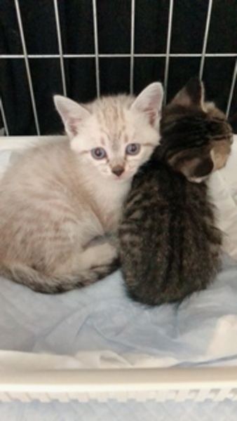 | 特徴(性格など) | キジトラちゃん 目が大きくておとなしい子です。小さいけれどよく食べます。人に慣れていて抱かれてもじっとしています。 キジシロちゃん ブルーアイでベージュ色のキジ模様。尻尾は茶のキジ模様が入っています。キジトラちゃんより一回り大きくよく食べます。怖がりさんですが人馴れしています。 小さくて性別がわかりにくいのですが、おそらくキジトラちゃんは雄、キジシロちゃんは雌だと思われます。 |