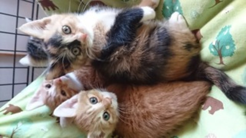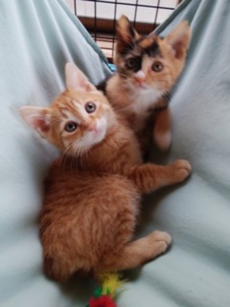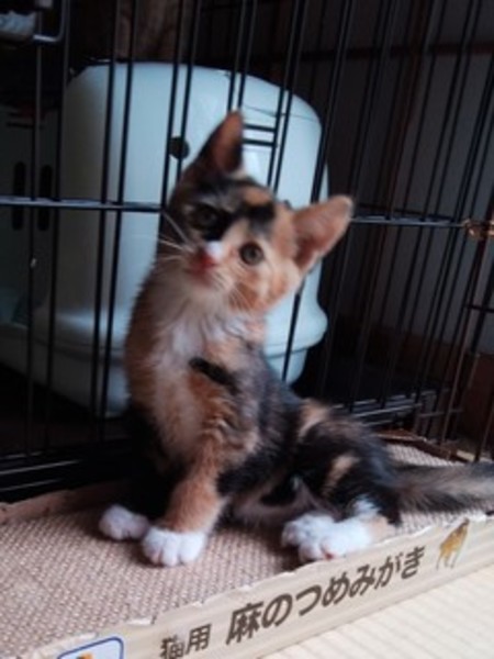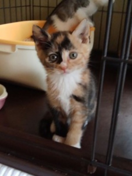 | 特徴(性格など) | トイレの躾済み、寄生虫駆除済み、エイズ・白血病検査陰性、ワクチン1回接種済 離乳食になったので、お世話が楽になりました。 写真より実物のほうが断然可愛いです。 ぜひ仔猫ちゃん達に会ってください。 ・三毛猫(メス)700g おとちゃん ・茶トラ(オス)700g うらちゃん ※体重は5/22現在です |
