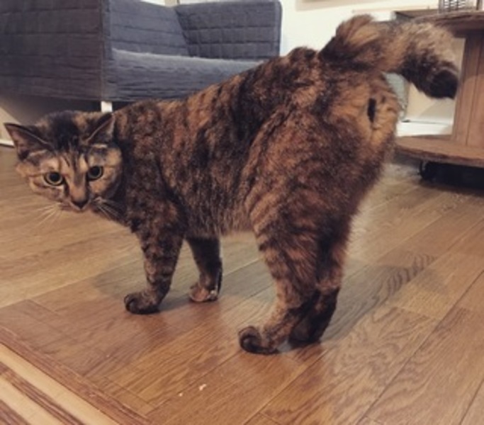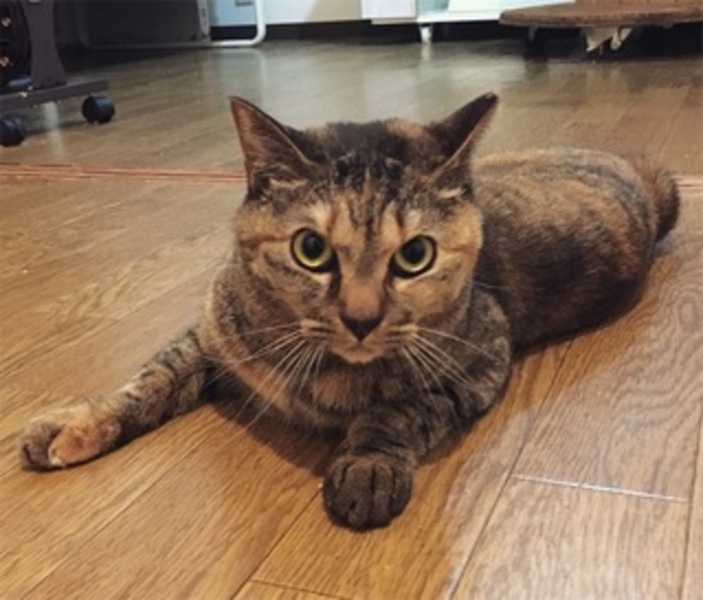 | 特徴(性格など) | 仮名は「タル子」で、むぎわら柄、小柄です。 アイラインバッチリで、いつも濃い顔です。 性格は、ベタ馴れしてる訳ではありませんが、体をゴシゴシ撫でて貰うのが好きで、ゴロンゴロンしながら近づいてきます。 尻尾はかぎ尻尾で右に曲がってます。 |