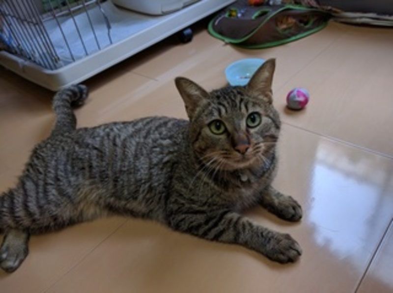 | 特徴(性格など) | キジネコのハンサムくん。毛並みもきれいです。お目めも真ん丸。とにかく人間が大好き、いつも人にくっついていたい子です。かみつきや引っ掻きはまったく無い子です。病院でもおとなしくしていました。たくさんの猫を世話してきましたが、その中で一番おとなしく飼いやすい子だと思います。すりすり甘えて、抱っこも大好き本当に可愛いです。猫ちゃんとくっついてまったり過ごしたい方にぴったりな相棒です。 | ||
