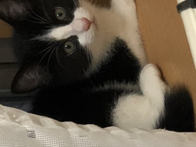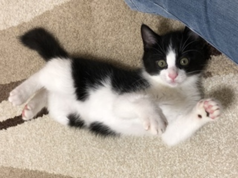 | 特徴(性格など) | 黒の多いハチワレです。仮名はあ胡ちゃんていいます。まだ、ちょっとビビりですが、抱っこも出来るし、おもちゃでも遊んでいます。 | ||