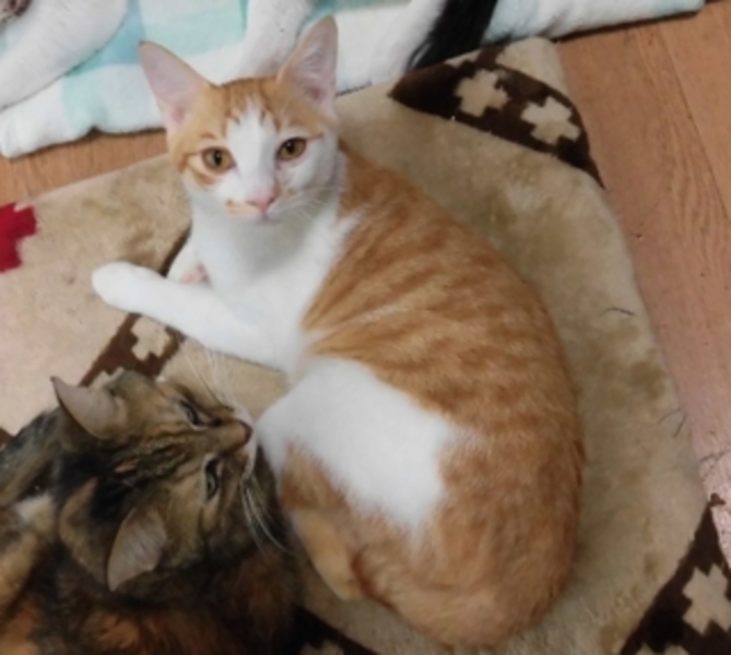 | 特徴(性格など) | 【仮名】涼君 オス/茶白 琴美ちゃん メス/キジ白(アビ風) ・不妊手術済 ・ワクチン済 ・ノミ/駆虫 済 ・ウィルス検査済/猫エイズ(−)猫白血病(−) |