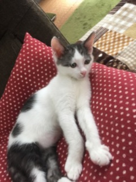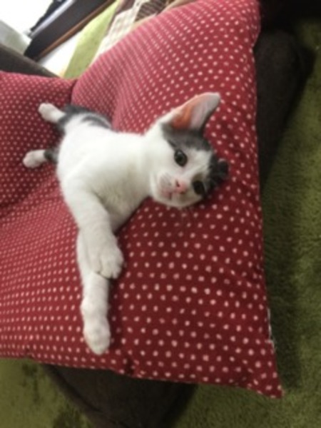 | 特徴(性格など) | とても人馴れしています。 コロコロ遊び あまえてくる可愛い子猫です。 猫に対しても上手に甘え 距離の取り方も弁えているように思います。 健康状態も良く 性格的にも難しいところがないので、初めて猫を飼う方でもお勧めできます。 |
