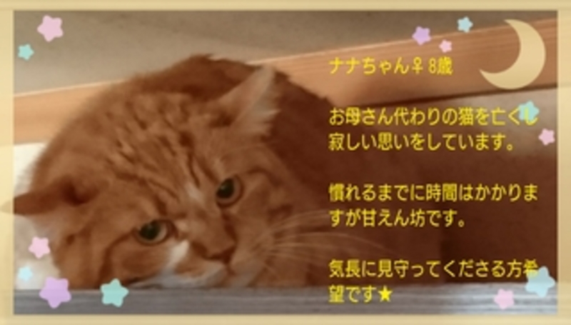 | 性別 | 猫 ♀ | 年齢 | 推定さみしいナナちゃん♀8歳 (2018/06/16 掲載時 ) |