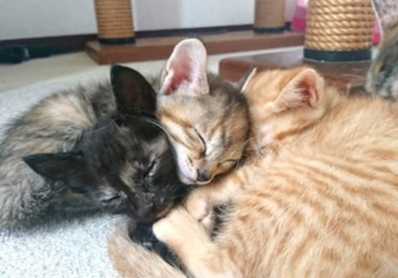 | 特徴(性格など) | 仮名 音ちゃん サビ♀ 仮名 めぐちゃん 茶白♀ 仮名 あいりちゃん 黒サビ♀ どの子も人間大好き、遊ぶこと大好き 元気いっぱいの子達です。 トイレの失敗もありません。 |