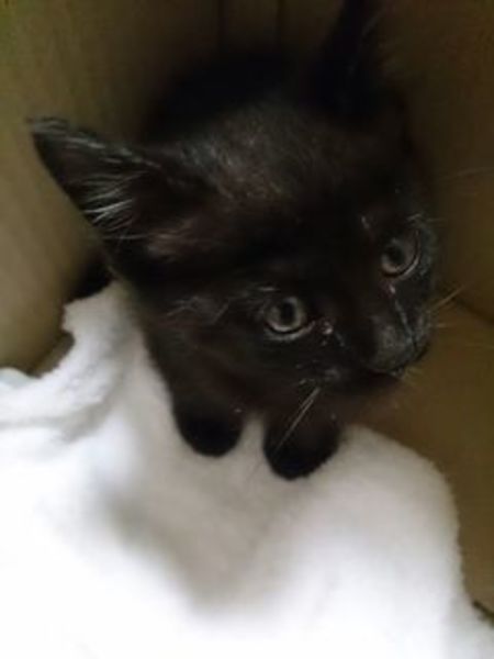 | 特徴(性格など) | 黒猫2ヶ月、健康状態良好、多少結膜炎あり点眼治療中 | ||