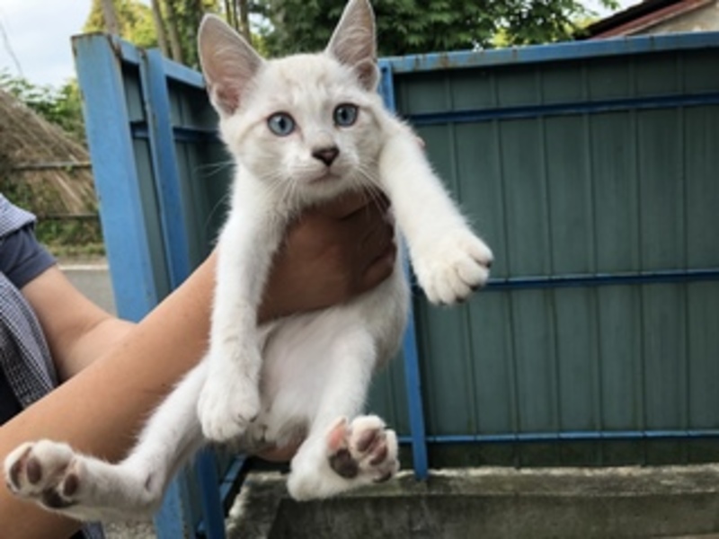 | 特徴(性格など) | 活発でやんちゃさんです。 人懐っこくて可愛いです♡ 実際は雑種ですが、見た目シャム猫ちゃんです。 目もブルーでキレイです♡ トイレも完璧で、もうカリカリなどキッチリ食べられます。 健康状態 すこぶる元気で下痢やその他の気になるところは今のところありません。 |
