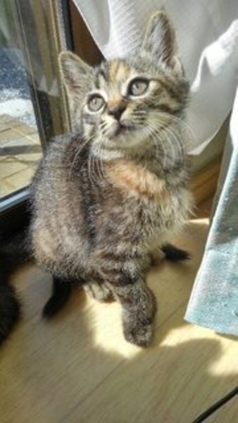 | 特徴(性格など) | きじとら柄のおす猫で、他にきじとらのおすと、錆柄のめすと3兄妹です とても人懐こく、すらっとしており尾も長いです。 エイズ白血病検査陰性 ワクチン二回済み 駆虫済み |